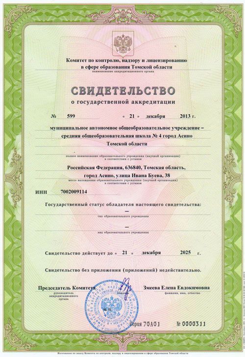 | Полное наименование образовательной организации* | муниципальное автономное общеобразовательное учреждение – средняя общеобразовательная школа № 4 город Асино Томской области |